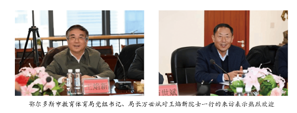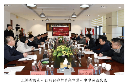 12月24日,中国科学院院士、中国地质大学(武汉)内蒙古研究院院长、环境学院王焰新教授一行前往鄂尔多斯市第一中学进座谈交流,鄂尔多斯市教育体育局党组书记、局长万世斌及相关领导参会。