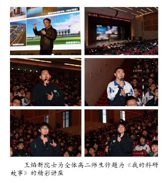 授牌仪式后,王焰新院士为全体高二师生作题为《我的科研故事》的精彩讲座。在讲座中,王院士围绕地下水研究、地热资源研究等专业知识分享了自己的科研故事,还就如何开展科学研究、如何面对科研中的挑战等问题与在场学生进行了深入的探讨和互动。他鼓励学生们要立鸿鹄之志,培养高贵人格,在学习和生活中理性选择,努力学习,赢得未来。