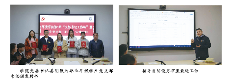 姜明敏为毕业年级学生党支部书记颁发聘书。