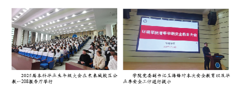 2月28日下午,学院2025年春季学期本研学生安全教育专题会议和2025届本科毕业生年级大会在未来城校区公教一208报告厅举行。左岭派出所住校民警韩红卫,未来城校区保卫综合办公室张献文、邱鑫、张涛,环境学院党委副书记王海锋,辅导员陈俊男、赵恩民以及本研学生参加会议。陈俊男主持会议。