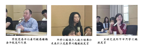 互动交流环节中,同学们围绕个人能力培养和未来职业发展等问题踊跃发言,积极请教。梅金华校友耐心细致地解答了同学们的问题,针对研究生个人能力培养问题,她建议同学们要在科研中养成敢思考、敢创新、敢尝试、敢解决的处理方式,既要强化能力提升,也要重视情商培养;针对女性职业发展问题,她结合自身实际经历与行业观察,建议同学们根据自身兴趣和实际情况制定发展路径,保持谦逊学习的态度,提高个人综合素养,强化自我调节能力,合理分配个人时间,权衡生活与工作关系,自尊自爱,坚定信念,茁壮成长。