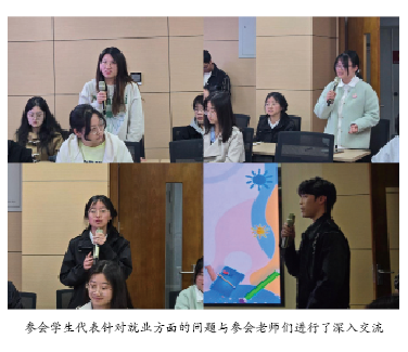 参会学生代表针对就业方面的问题与参会老师们进行了深入交流,老师们对大家提出的问题进行耐心解答,并结合自己的学习和工作经历,与同学们分享学习科研和就业方面的宝贵经验,为同学们的求学和求职规划提出合理建议。