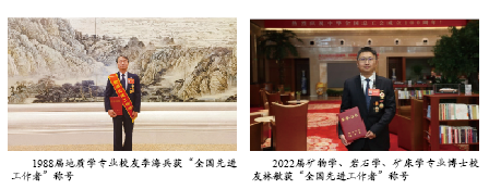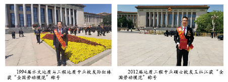 2009届地质工程实验班、2012届地质工程专业硕士校友,中铁第一勘察设计院集团有限公司高级工程师王杜江获“全国劳动模范”称号。王杜江先后担任包头环线、关中城际铁路、广佛江珠城际铁路、延安至榆林高铁、高原铁路等多地区、多类型国家重点项目的地质专业负责人,出色完成了各项勘测、设计、科研攻关任务,是勇挑重担、善于冲锋的工程地质业务骨干。他曾获得各类省部级勘察、技术奖8项,获铁一院“青年岗位能手”“先进生产个人”“中国铁建劳动模范”、西藏自治区“劳动竞赛先进个人”、2020年“全国青年岗位能手(标兵)”、2021年“全国五一劳动奖章”、第26届“中国青年五四奖章”等荣誉称号。