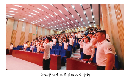 全体毕业生党员齐唱国歌,重温入党誓词。“张国旗班”党支部黄聪明领誓。a按照学校规定提交相关材料,确保党团组织关系及时转接落实到位。