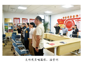 支部党员唱国歌、温誓词。
