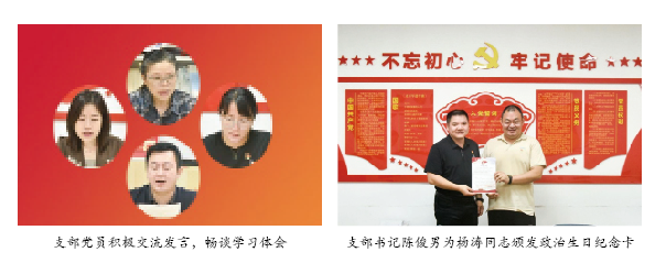 陈俊男为杨涛同志颁发政治生日纪念卡。
