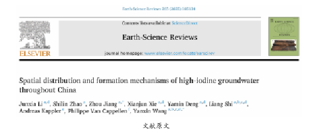 近日,中国地质大学(武汉)王焰新院士团队联合德国、加拿大学者,在地球科学领域著名学术期刊Earth-Science Reviews上发表了题为“Spatial distribution and formation mechanisms of high-iodine groundwater throughout China”的综述论文。该研究总结了中国高碘地下水的空间分布规律,阐明了含水层碘的物源与赋存形态,讨论了导致含水层碘富集的宏观水文地质过程和微观生物地球化学机理,展望了高碘地下水的未来研究方向。该研究成果为理解地下水系统中碘迁移富集机制和全球碘循环规律,以及推动与高碘地下水有关的甲状腺疾病防控,提供了重要理论支撑。本研究受到国家自然科学基金重点国际(地区)合作研究项目资助。