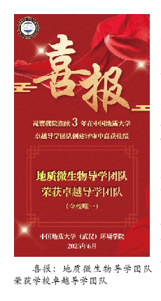 近日,我校2024-2025年度卓越导学团队创建评审结果公布,我院地质微生物导学团队获评校级卓越导学团队,这是继我院环境水文地质导学团队、环境地球化学导学团队后,连续三年有团队获此殊荣。