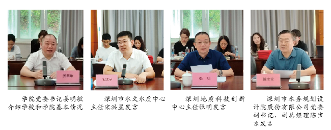 29日上午,学院与深圳市水文水质中心、深圳地质科技创新中心、深圳市水务规划设计院股份有限公司等三家单位共同举行产学研合作交流座谈会。三家单位相关领导出席座谈,深圳市水文水质中心副主任郜银梁主持会议。