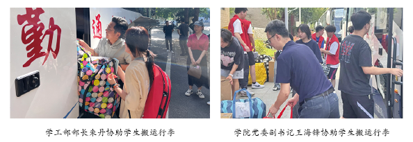为确保搬迁工作高效、顺畅、安全进行,学院高度重视,提前谋划。在学院党委的统一领导下,学院积极与学校相关职能部门沟通协调,制定了周密的搬迁实施方案,细化任务分工,明确责任到人。搬迁当日,学院领导班子靠前指挥,学工组全体辅导员、24级班主任潘欢迎老师现场全程组织协调,“张国旗班”志愿团成员、各学生党支部及学生会骨干等组成的志愿者团队冲锋在前,与同学们密切配合,确保了搬迁各环节无缝衔接、有条不紊。