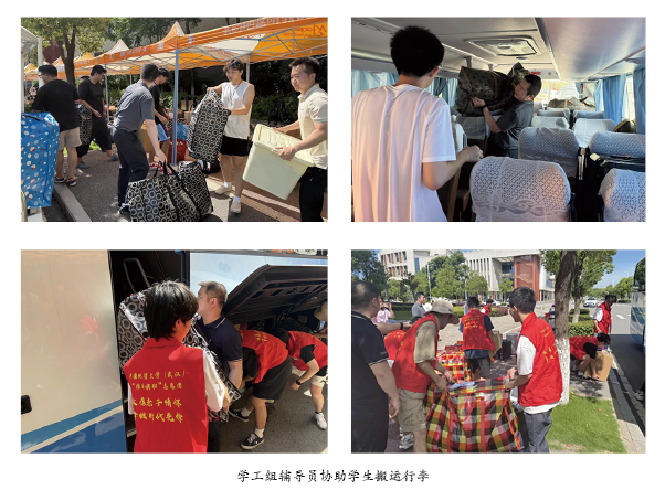 清晨,搬迁工作在南望山校区有序启动。党委副书记王海锋、24级班主任潘欢迎老师和24级辅导员细致组织同学们装车。与此同时,未来城校区接应组也已准备就绪。党委书记姜明敏带领全体学工组辅导员、学生志愿者准备接车。