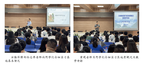 黄琨老师为同学们介绍三峡秭归实习区地质概况及教学安排,就实习区自然地理条件、区域地质概况和实习期间工作安排等方面作详细介绍。他强调,要严格遵守实习基地和学院实习实践各项管理规定,注重培养吃苦耐劳、团结协作的精神,在实习实践中不断总结反思,提高野外工作能力。同时,要牢固树立“安全第一”意识,加强风险防范,严格做好各项安全管理工作,确保实习实践安全。