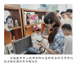 11日下午,实验教学中心钱坤老师和梁莉莉老师为同学们做实验仪器使用专题培训,各带班教师开展班级实习动员、安全教育,带领各班参观基地沙盘和岩石园。