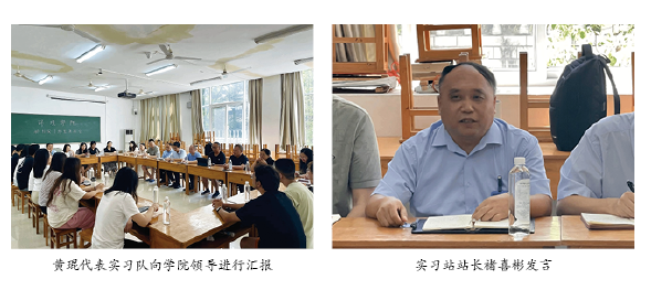 姜明敏讲话。他表示,暑期实习是将理论知识转化为实践的关键环节,学院高度重视实习教学工作,并向参与本次实习的带队教师表示充分感谢,对同学们的良好表现表示高度肯定。接着他从“感谢和致敬、知道和做到、希望和期待”等维度作总结,希望同学们珍惜本科阶段最后一次宝贵的实习机会,总结提升,满载而归。面对从课堂到田野间教学场所和条件的转换,要做好“知”和“行”的转化,提高自我实践能力,培养体察国情和厚植情怀的责任感,更好地将专业知识应用到未来工作中。同时,他提醒同学们,家庭是远方的保障,是最坚强的后盾,要及时与家人保持联系。